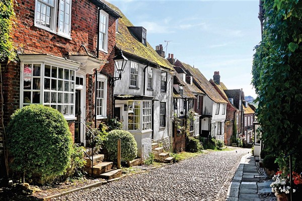 Kent’s mainline in miniature. The train takes us alongside Romney Marsh to New Romney where we take a short break and rejoin the coach to continue to ancient Rye, one of the Cinque Ports although now some distance from the sea!