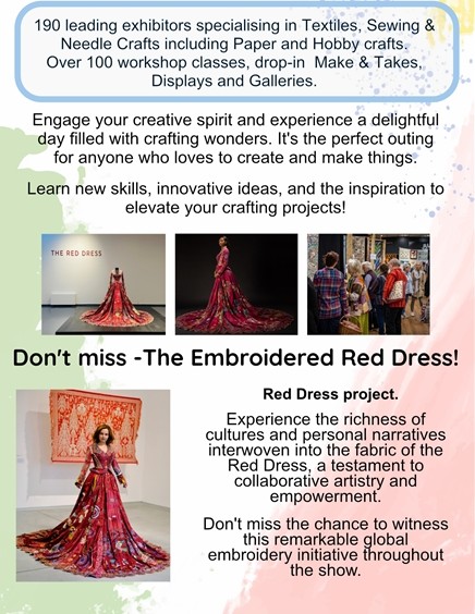 This is more than just an event, it's a celebration of creativity, innovation, and the joy of crafting and needlework. The show promises to delight crafters and textile artists alike. Delve into an extensive selection of fabrics, patterns, and sewing essentials, perfect for both budding crafters and seasoned artisans. This exciting show is packed with over 150 leading local and national exhibitors offering a wide range of products for all your crafting and sewing needs. Plus, card making, papercrafts, stamping, cross stitch, embroidery, beading, painting, patchwork, quilting, knitting, dressmaking and so much more.